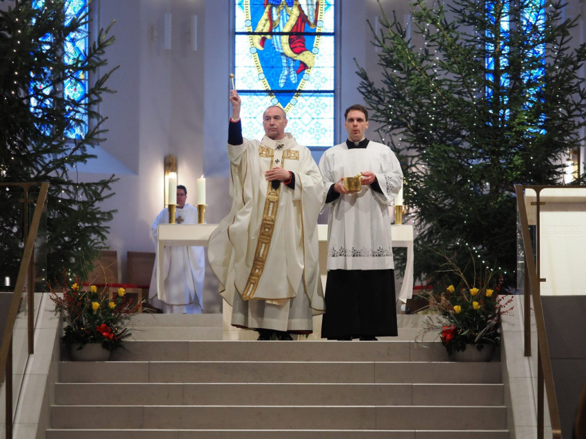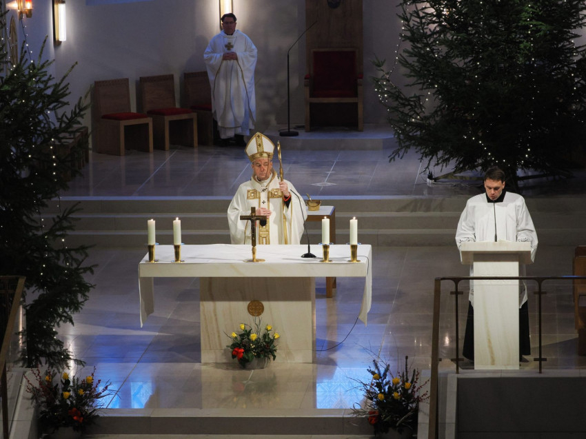 Elérkezett, aki uralkodik minden nép fölött; kinyilvánul Isten hatalmas dicsősége. Ezt ünnepeljük a Gyermekben – mondta a szentmise elején a főpásztor. – Uralkodik fölöttünk, és ezt az uralmat megosztja övéivel. Megosztja velünk, amikor megkeresztelkedtünk.
