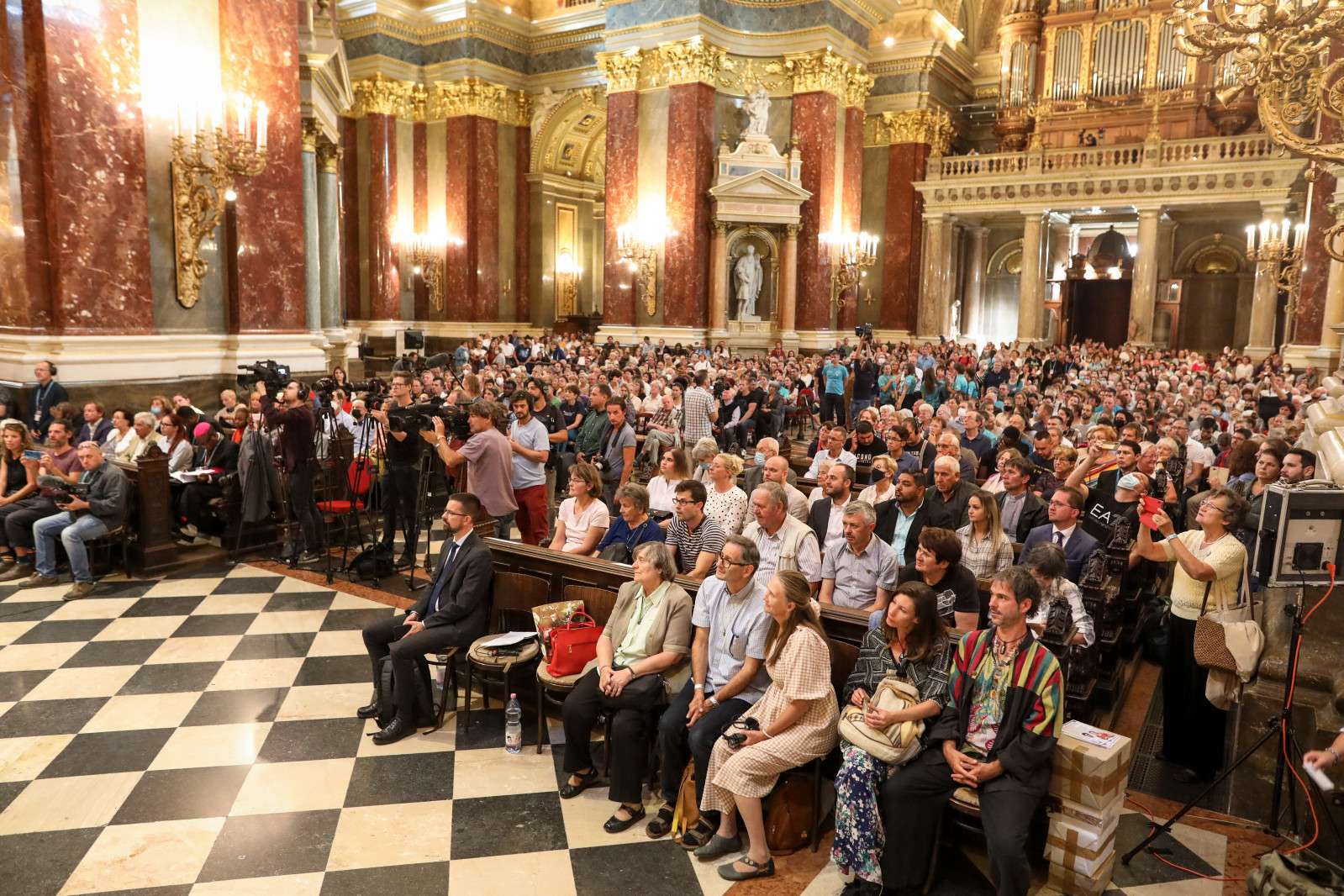 Fotó: Merényi Zita (Érszegi Márk a szeptember 6-i Afrika-napon a Szent István-bazilikában készült fotón a jobb padsor előtt ül, középről az első széken.)