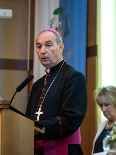 Udvardy György érsek ünnepi beszédében elmondta, nagyszerű dolog a végzős növendékekkel örömükben osztozni. Hozzátette: az akadémiai év zárása mind a fenntartót, mind az intézményvezetőt gondolkodásra ösztönzi, hogy milyen jövőt szánnak a főiskolának. Ebben a közös gondolkodásban a frissen diplomázottaknak és az intézmény oktatóinak is nagy szerepük van.