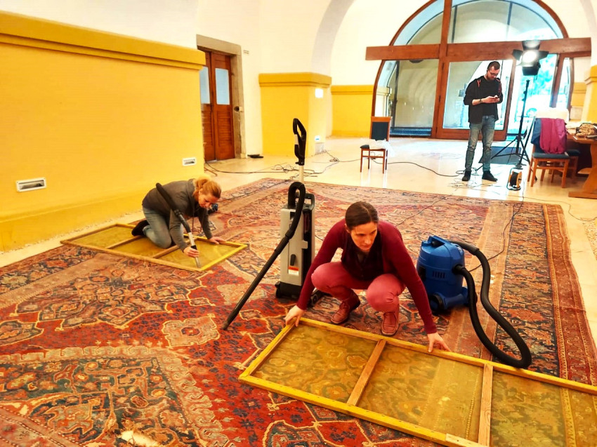 Mivel a szőnyegek restaurálásra szorulnak, s szakszerű tárolásukra nincs megfelelő hely a pécsi püspökségen, felajánlották őket az Iparművészeti Múzeum gyűjteménye számára, ahol örömmel vállalták az értékes, de nem túl jó állapotban lévő szőnyegek tisztítását, fertőtlenítését és restaurálását.