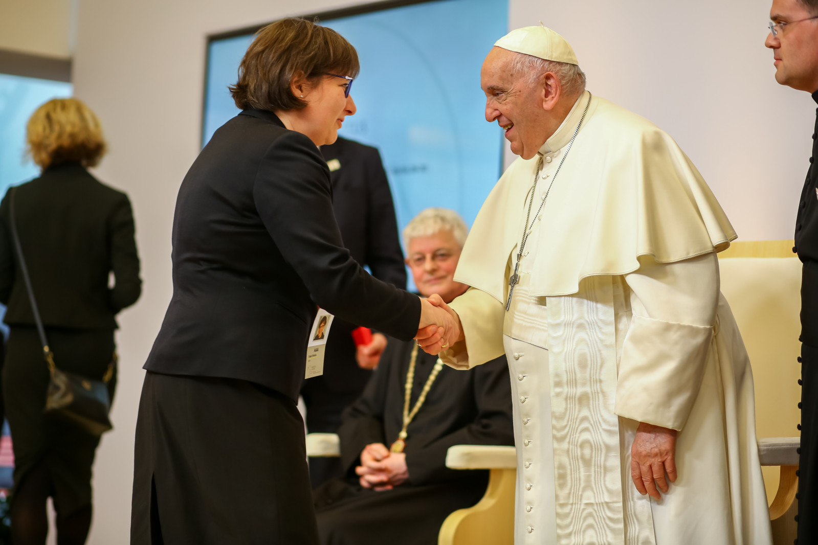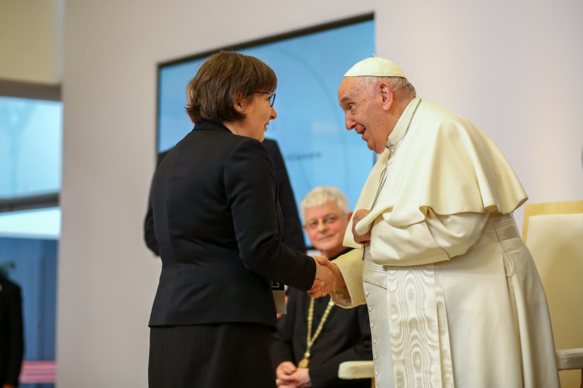 Csapó Viktória és a Szentatya találkozása a PPKE ITK-n
