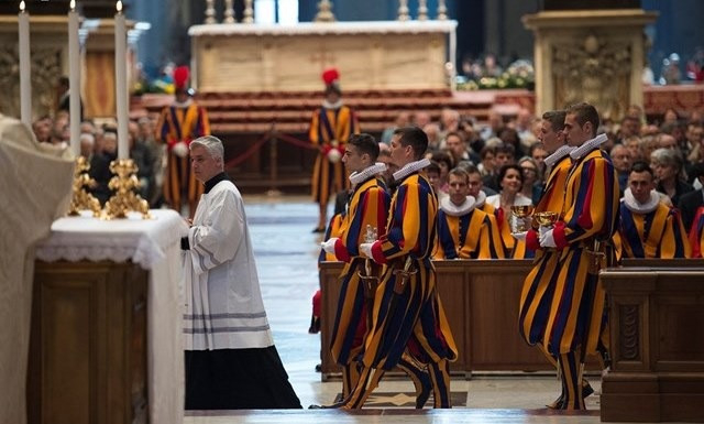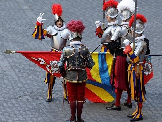 A Róma kifosztásakor 1527-ben a pápa védelmében hősi halált halt 127 svájci gárdista emlékére tartják évente május 6-án az Apostoli Palota Damazusz udvarában az újonnan bevonult gárdisták eskütételét. Idén 23 alabárdos gárdista tett egyenként esküt a parancsnoka előtt.