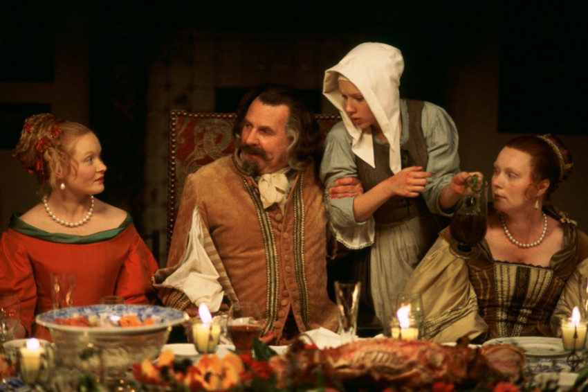 A film Vermeer egyik festményének címét kapta: Leány gyöngy fülbevalóval. A kép persze ismerős lehet számunkra, hiszen rengeteg reprodukció készült róla az idők folyamán. A moziban láthatjuk is, ahogy díszdobozokon, pólókon, ceruzákon és mindenféle más tárgyakon is megjelenik a fiatal lány képe. Első ránézésre talán nem is tűnik különlegesnek ez a festmény, hiszen csak egy feltűnő turbánt viselő leányfejet ábrázol, egy felénk forduló arcot a semleges, majdnem teljesen fekete háttér előtt. Ráadásul nem is nagyméretű a kép, talán 40 x 60-as lehet, bár ahogy mondani szokták, nem a méret a lényeg.