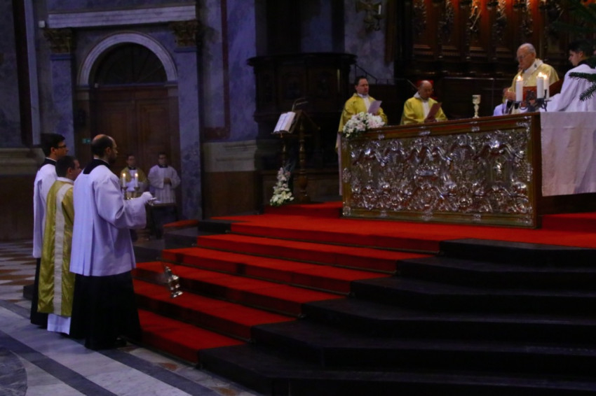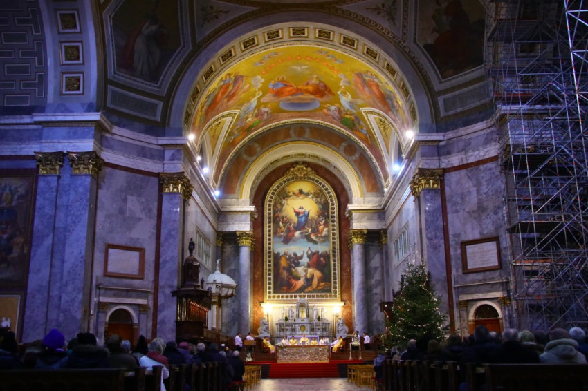 Éppen ma, Mária istenanyaságának ünnepén gondoljunk imádattal az Oltáriszentségre. Ezért is van bazilikánk közös szentségimádása mindig az év első napján. Hiszen Jézus valóságos emberként járt köztünk a földön. Az utolsó vacsorán a kenyérben és a borban mégis – isteni hatalommal – testét és vérét hagyta ránk. Ebben a szentségben tehát különösen is tiszteljük Krisztus titkát. Ő az, akiben különös módon is közöttünk van isteni és emberi természetben a második isteni személy. Benne valósul meg tökéletesen az a harmónia, az a béke, amelyet mi is kérünk önmagunk és az egész világ számára.