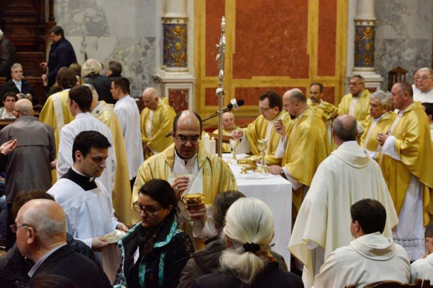 Este hét órakor közösen vettek részt az esztergomi bazilikában a szentmisén, amelyet Erdő Péter bíboros celebrált.