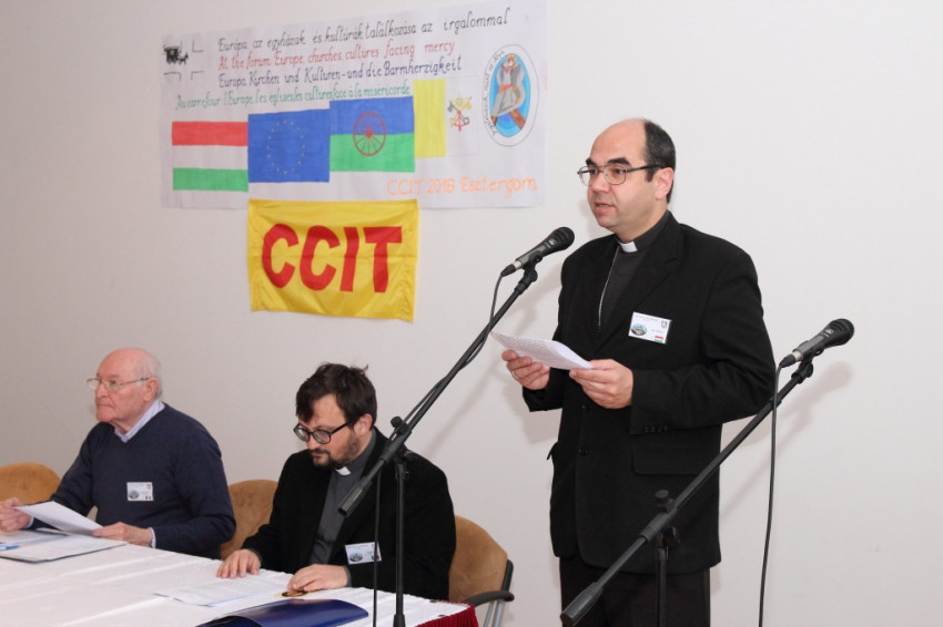 A püspöki köszöntést követően Alessandra Pander nővér olvasta fel a Vándorlók és Úton lévők Pápai Tanácsának Üzenetét. „Az irgalmasság éve, melynek napjait éljük, világosan rámutat, mennyire szükségünk van Isten szeretetének megtapasztalására, s nemcsak nekünk magunknak, hanem roma és szinti testvéreinknek is. Szükségünk van továbbá annak megtapasztalására is, hogyan járja át ez a szeretet létezésünk minden dimenzióját, különösen a hitünk és annak kifejezési módjait valamint, társadalmunkat és a kulturális közeget illetően, melyben élünk… Témátokat illetően megállapítható, hogy az irgalmasság az egyház, a kultúrák és Európa közti találkozás helye, ám egyúttal az egyház és a társadalom összetartozását is ki kell fejeznie, keresve a közeledés megfelelő módját annak érdekében, hogy megszülethessenek az együttlét új formái, melyek az igazságon, a szolidaritáson, a testvériségen és a békén nyugszanak. Az irgalmasság mindezen célok eléréséhez megmutatja a jó utat, vagyis a visszatérést Ahhoz, aki az egész emberiség számára kinyilatkoztatja az irgalmas Isten szeretetét, Krisztushoz, az egyetlen Megváltóhoz” – áll Antonio Maria Vegliò bíboros, a pápai tanács elnöke üzenetében.