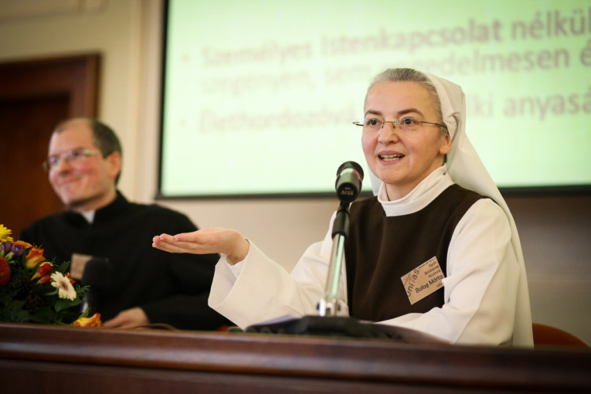 A tisztaság kérdéskörét pozitívan közelítették meg: a tisztaság karizma, Isten ajándéka, s így nem emberi erőfeszítés eredménye, ami azonban nem jelent küzdelemmentességet. „Isten nem azért adta a tisztaságot, hogy azt mi fogcsikorgatva kibírjuk, hanem annak lehetőségeként, hogy a krisztusi életformát megéljük.” Erről az alapról indult a témakifejtés. A két előadó kérdések sokaságát fogalmazta meg a hallgatóság számára, felvázolták a tiszta élet kapcsán megjelenő csapdákat, szóltak a veszélyekről, de a hangsúlyt a megajándékozottságra tették, azt bemutatva, mit ad az embernek az elköteleződés révén nyert szabadság. A tiszta élet tanulást és állandó reflexiót igényel – szögezték le, és mind a férfi, mind a nő szempontjából felmutatták a tisztaság megélésének torz gyakorlatát. A férfit az egocentrizmusba forduló cölibátus, a tanulmányokba, társadalmi kapcsolatokba, templomépítő menedzsmentbe való menekülés veszélyezteti, a nőt pedig a rideg, zsémbes, szenvedélyét vesztett, vénkisasszonyos lelkület fenyegeti.