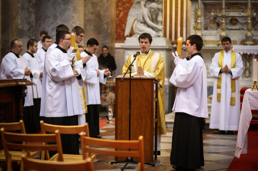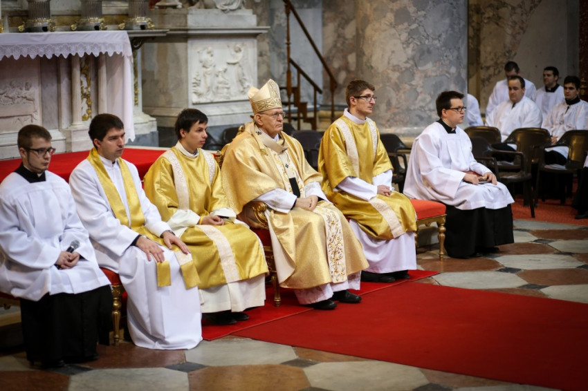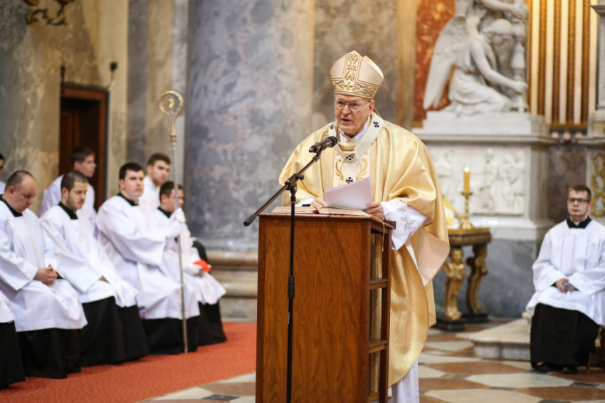 Jézus kimondja, a törvény Isten üzenete, és abból nem vehetünk el semmit, de magasabb követelményt állít az ember elé: meg kell értenünk a törvény lényegét. A gyilkosság bűnéről szólva az emberi élet tiszteletének és szeretetének követelményét fogalmazza meg, az esküvés tiltásával pedig az igaz, megbízható, egyértelmű beszéd szükségességére figyelmeztet. Jézus így segít eligazodni az életben, és minden korban megadja az őt keresőknek az iránymutatást – fogalmazott a bíboros. Éleslátást és erőt kívánt minden növendéknek ahhoz, hogy építsék személyes kapcsolatukat azzal, aki „minden korban eligazodást ad”.