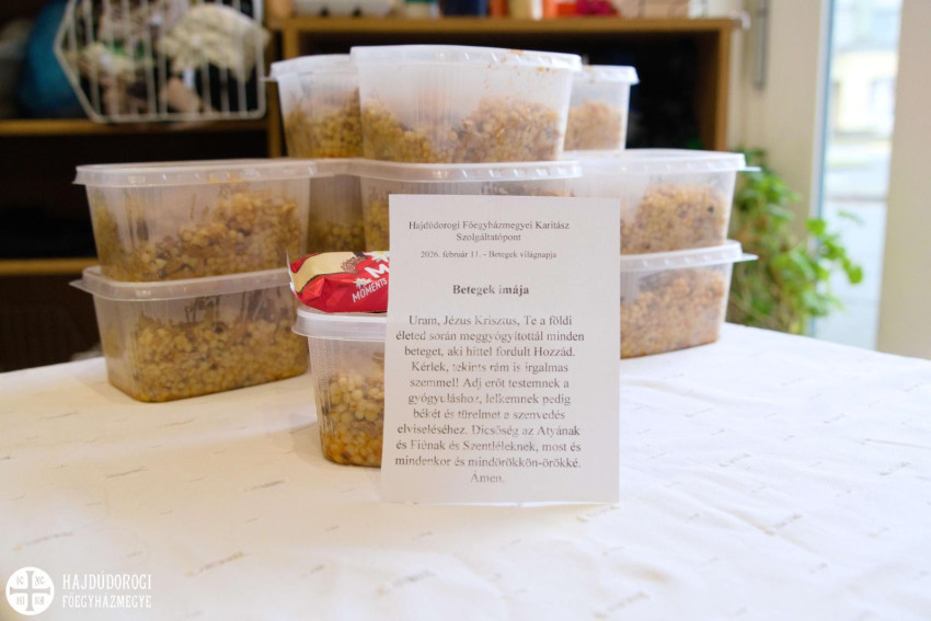 Aki eljött, egy bőséges adag tarhonyás húst, a karitász egyik munkatársának felajánlásából pedig egy ostyaszeletet kapott. Az étellel együtt a betegek imádságát is magával vihette mindenki.