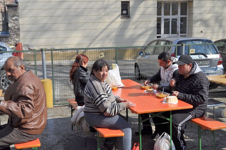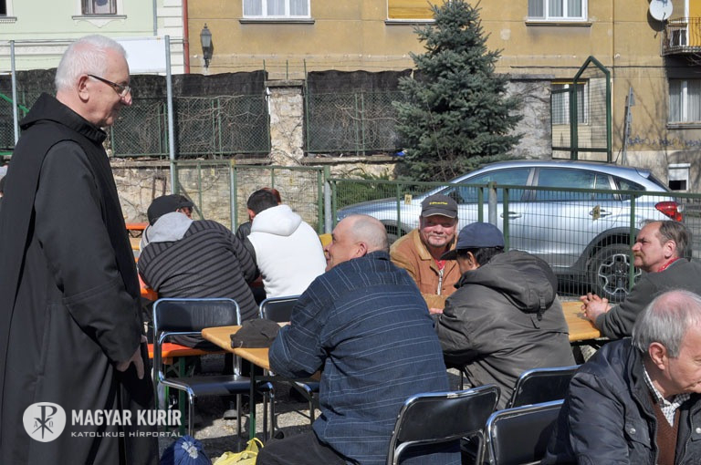 A keddi ételosztáson Morvay Pio házfőnök a szomszédos kórházban várakozókat is megszólította, és ebédre invitálta.