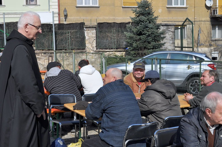 Az irgalmasrendi kórház udvarán felállított sörpadok gyorsan megteltek. A rendnek ez volt az idei első akciója, de szokás szerint minden évben kétszer megvendégelik a rászorulókat Pécsett. Morvay Imre Pio, a Betegápoló Irgalmasrend pécsi rendházának házfőnöke elmondta: „Istenes Szent János példája mindannyiunkat elgondolkodtat. Ő családjának tekintette a szegényeket. Mi is szeretnénk nyílt szívvel feléjük fordulni. Amit tudunk, hozunk és adunk.”