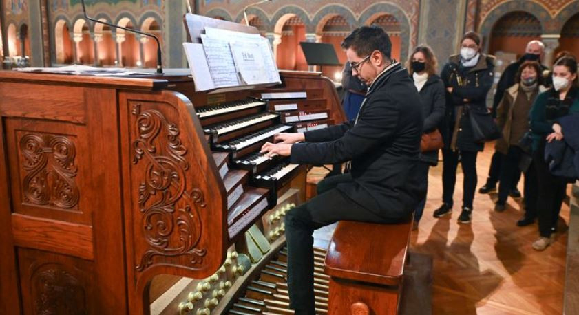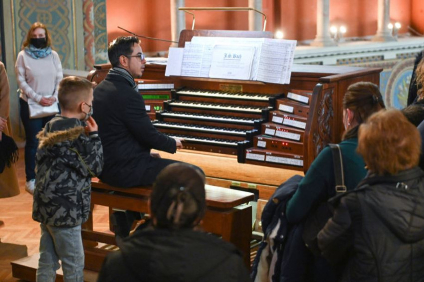 Az építéstörténeti előadás során a kóruson Dóbisz Áron orgonaművész a hangszert is megszólaltatta, aki többek között Bach g-moll fantáziáját adta elő.