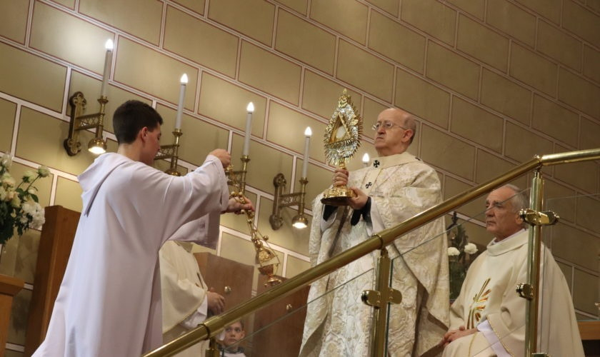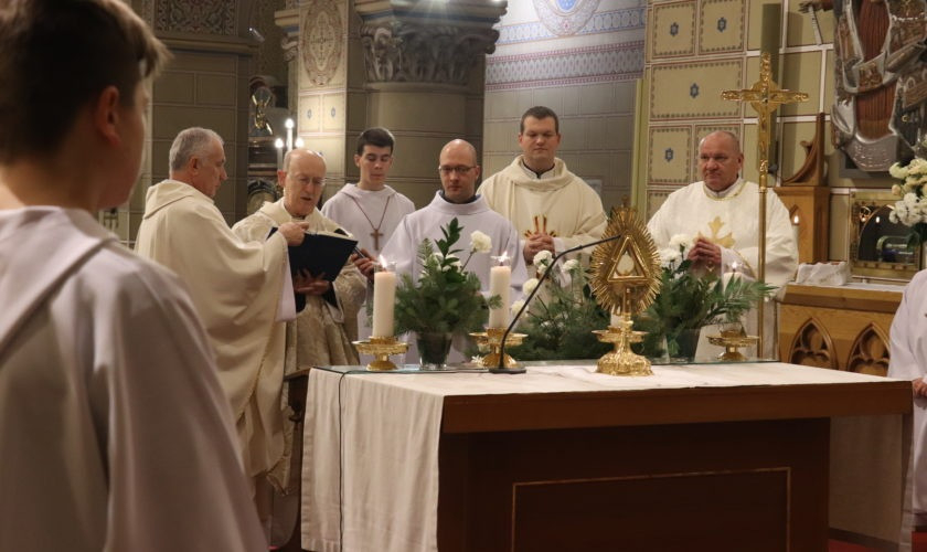 A szentmise végén a Te Deumot követően az Oltáriszentség előtt imádkozva adtak hálát az év kegyelemeiért a veszprémi bazilikában, végül a főpásztor szentségi áldásban részesítette a híveket.