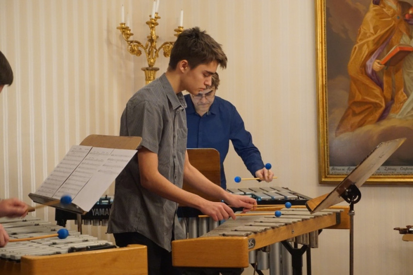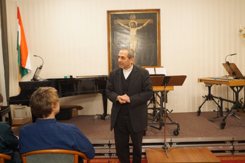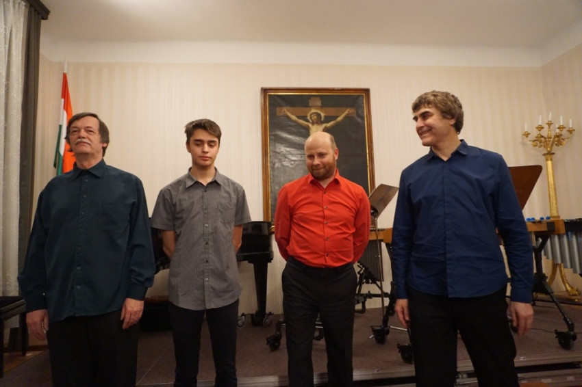A szentmise után a díszteremben megtartott Adventtől vízkeresztig ütős dallamhangszerekre és zongorára című hangversenyen Bojtos Károly, a Kossuth- és Liszt Ferenc-díjas Amadinda Ütőegyüttes tagja, Tóth Benedek ütőhangszeres művész, valamint fia, Tóth András és növendéke, Kéry János zongoraművész alkotott alkalmi zenekart.