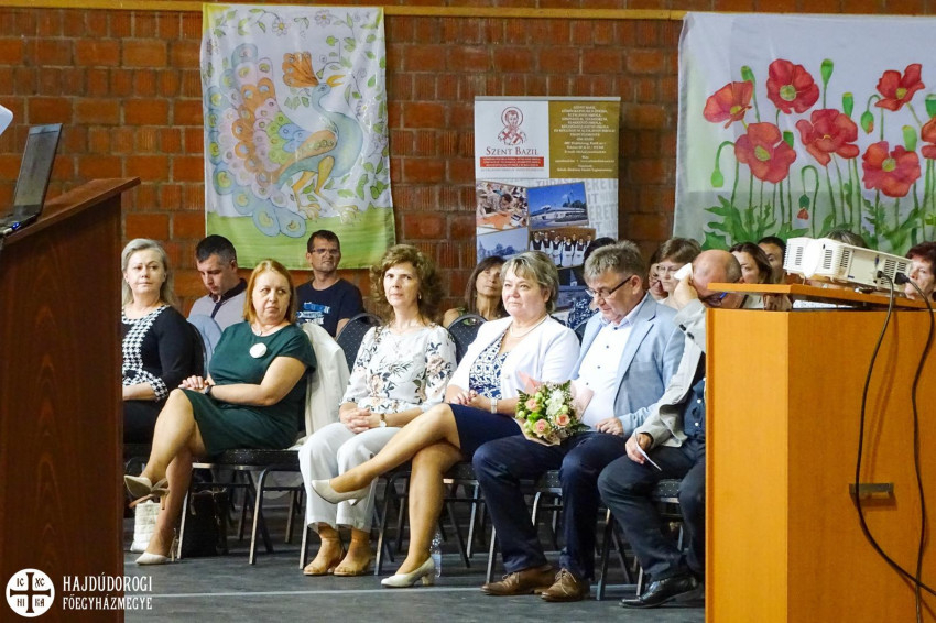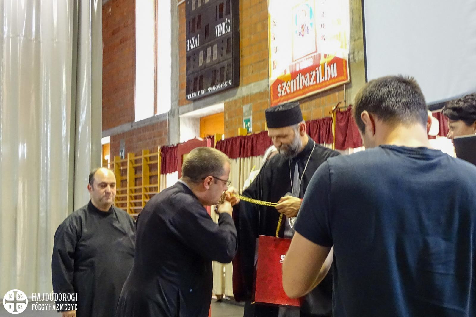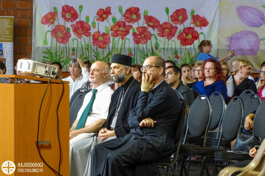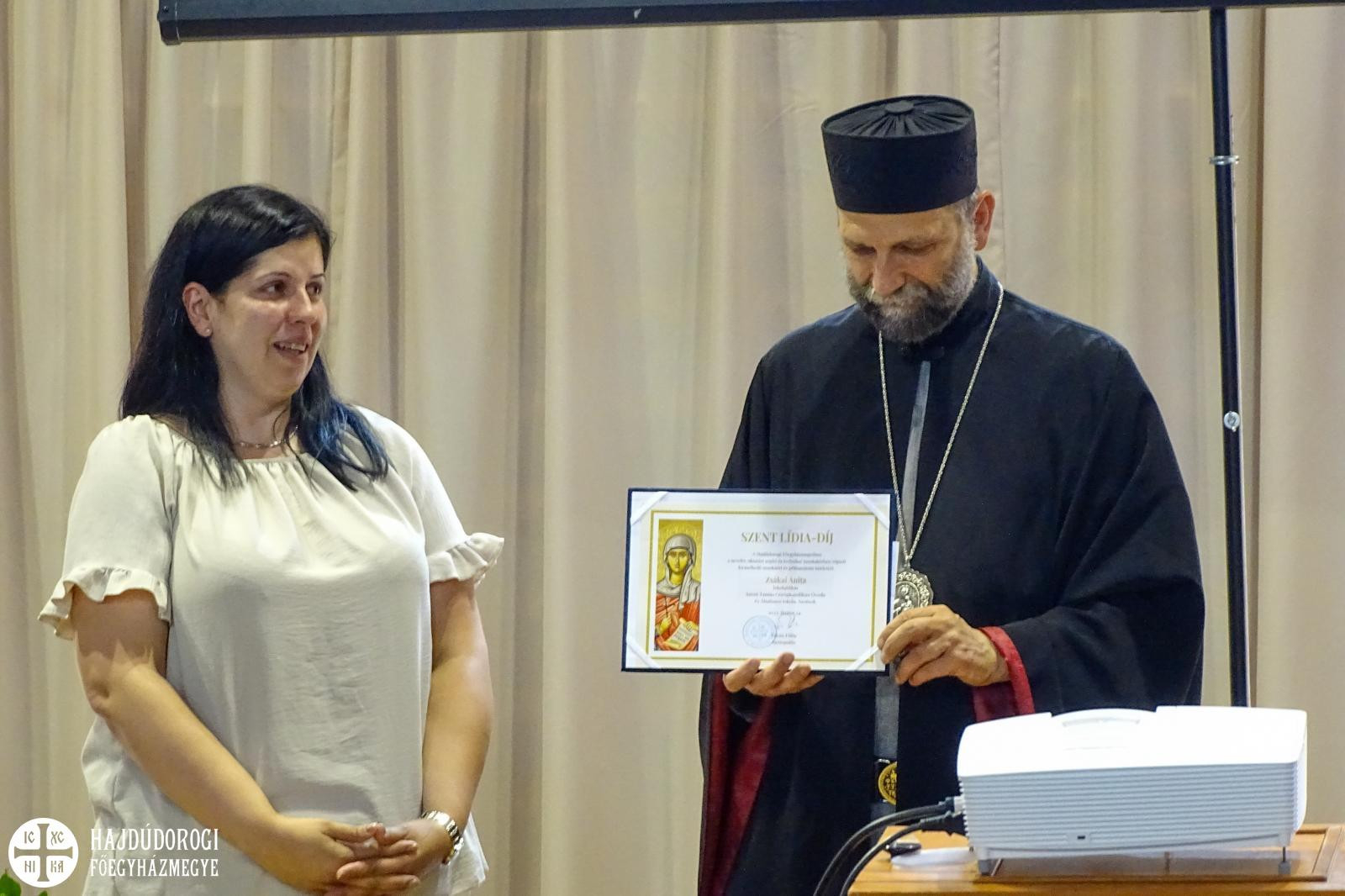 Az előadást követően Kocsis Fülöp metropolita és Czövek Éva, a főegyházmegye oktatási hivatalának vezetője átadta az idei Szent Gellért-díjakat a Hajdúdorogi Főegyházmegye fenntartásában működő köznevelési és szakképzési intézményekben dolgozóknak.