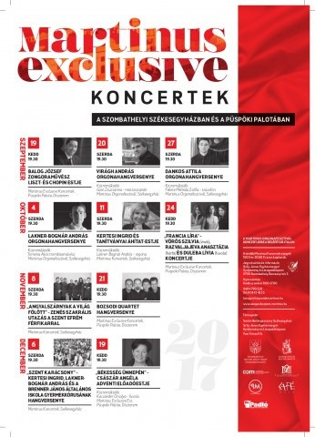 A Martinus Exclusive koncertsorozat szeptembertől 19-től december 19-ig klasszikus zenével és értékes előadásokkal tölti meg a két műemlék épület tereit. A püspöki palota díszterme kiváló akusztikájával elsősorban kamara-előadóestek helyszínéül fog szolgálni. Az esteken többek között Balog József zongoraművész, a Bozsodi-vonósnégyes, Vörös Szilvia, Razvaljajeva Anasztázia és Duleba Lívia lép fel; továbbá irodalmi estet tartanak, Császár Angéla színművésznő közreműködésével.