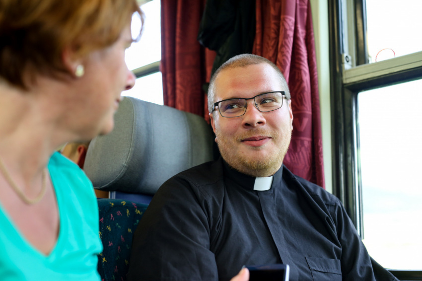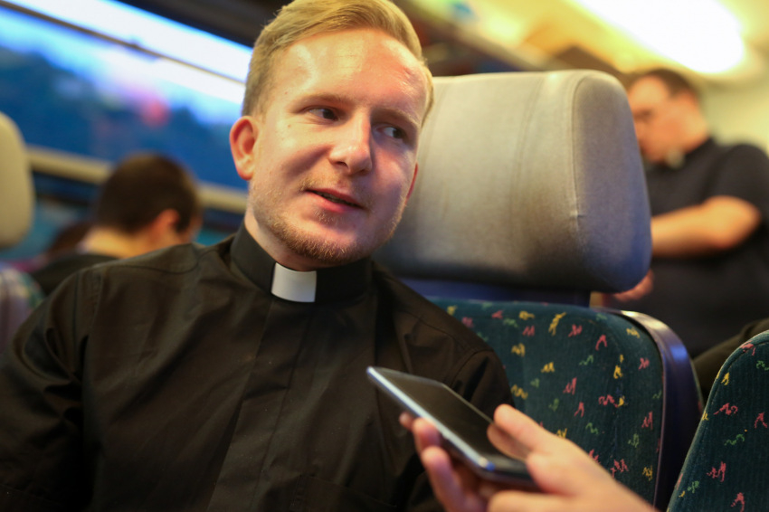 A főpásztorral mintegy 160 zarándok érkezett a Pécsi Egyházmegyéből. A vonat első két kocsiját lakták be, népes közösségük számos pap testvér kíséretében vett részt az úton. Vidám társaság gyűlt össze élménybeszámolóra Nyúl Viktor pasztorális helynök atya körül. Főként gimnazisták. A többség a Szent Mór Iskolaközpont kilencedik osztályába jár, az osztályfőnökük, Pamuk Laura kísérte el őket. „Az ifjú titánok” – mondja róluk büszkén Viktor atya, és szemmel láthatólag nagyon örül mindannak, amit a fiatalok a zarándoklat során szerzett élményeikről mesélnek.
