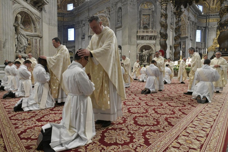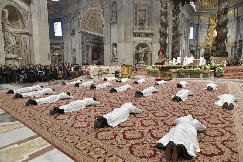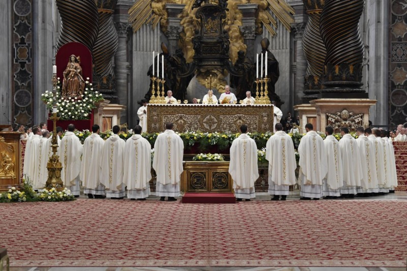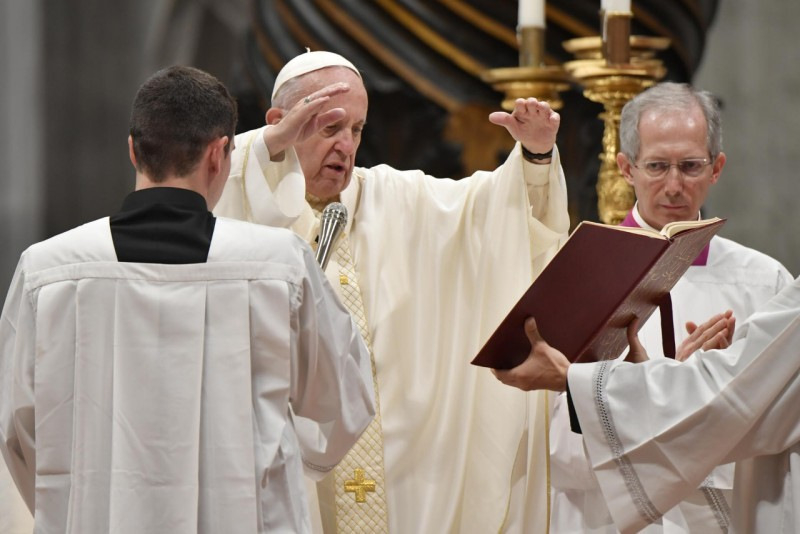 Sok éves megfontolás után, saját és elöljáróik megfontolásai után, ma a diakónusok azért jelentek itt meg, hogy pappá szenteljem őket – mondta homíliájában Ferenc pápa. – Krisztushoz, a Legfőbb, Örök Főpaphoz fognak hasonulni. Felszentelésük után mint az Újszövetség valódi papjai egyesülnek a papságban püspökükkel, hirdetik az evangéliumot, Isten népének lelkipásztorai lesznek, vezetik majd az istentiszteleti szertartásokat, különös tekintettel a szentmiseáldozatra, vagyis az Eucharisztiára.