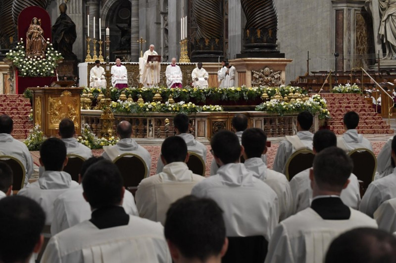Legyenek figyelmesek az Eucharisztia ünneplésekor. Kövessék életükben azt, amit ünnepelnek. Az Úr halálának és feltámadásának misztériumában részesülve, hordozzák Krisztus halálát végtagjaikban, és vele együtt haladjanak az új életben. Az Úr ingyen akart minket üdvözíteni. Ő maga mondta: „Ingyen kaptátok, ingyen is adjátok” (Mt 10,8). Az Oltáriszentség ünneplése az Úr ingyenességének csúcspontja – mondta a pápa, arra kérve a szentelendő papokat, hogy ne piszkítsák be azt kicsinyes érdekekkel.