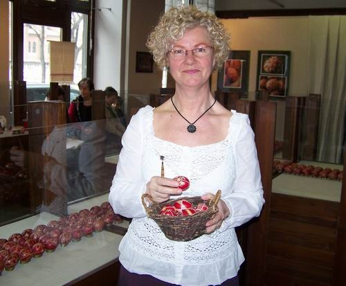Mosonyi Éva, aki 2005-től viseli a népi iparművész címet, beszámolt arról is, hogy anyai nagyanyjától tanulta meg a viasszal, gicával történő tojásírás technikáját.