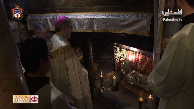 Ezúttal Pierbattista Pizzaballa érsek, a jeruzsálemi latin pátriárka apostoli adminisztrátora, hivatalának ideiglenes képviselője állt szombat délben az ünnepélyesen Betlehembe vonuló egyházi méltóságok élén, majd tartotta meg a hagyományos éjféli misét a Szent Katalin templomban, mivel Fuad Tual jeruzsálemi pátriárka utódját még nem nevezték meg.