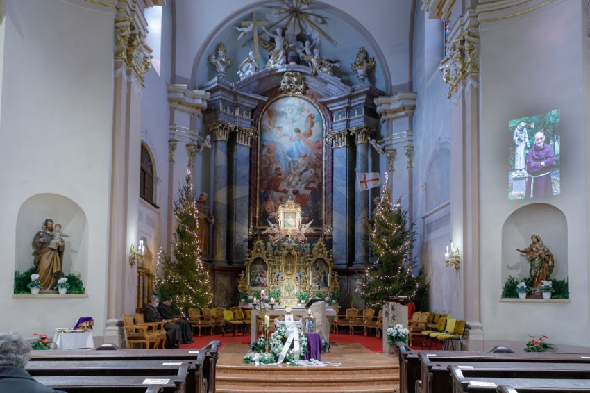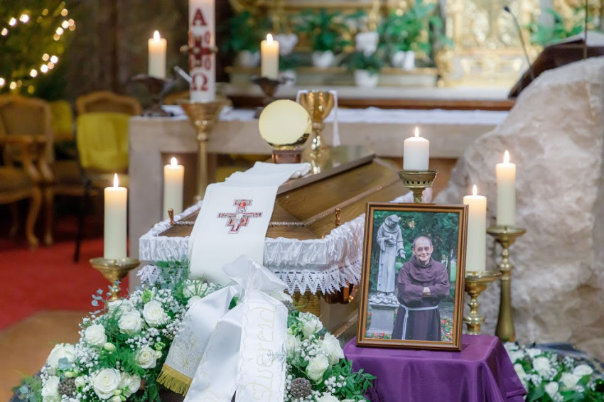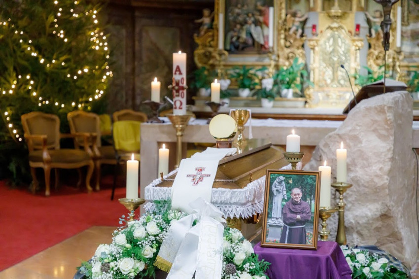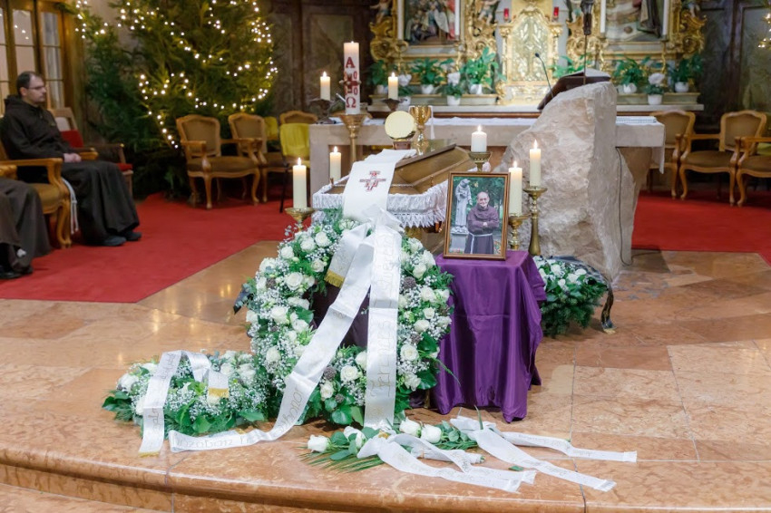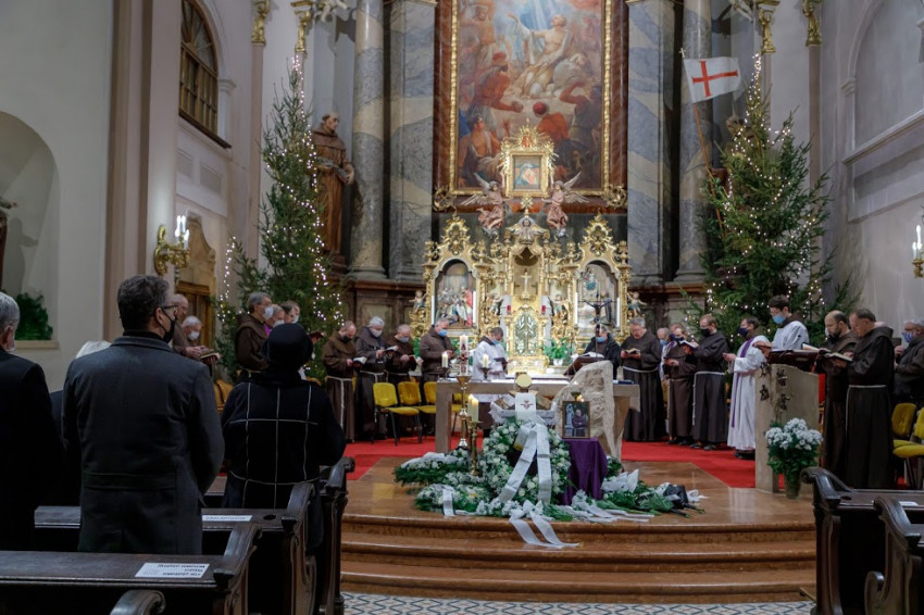 A hozzátartozók, barátok, ismerősök az imaóra előtt a szentélyben elhelyezett koporsónál róhatták le kegyeletüket. A 11 órakor kezdődő misére – amelynek főcelebránsa Berhidai Piusz tartományfőnök volt – az ország valamennyi ferences plébániájáról érkeztek testvérek.