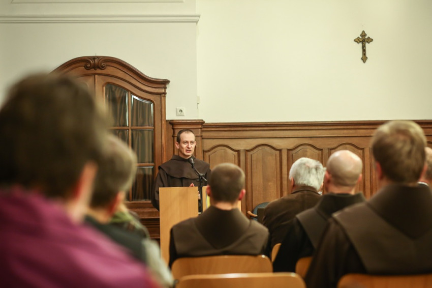 „A magyar rendtartomány élete mindig is összefüggött a könyvekkel, hiszen mindig voltak könyvtáraink, valamint a novícius testvéreknek is meg kellett tanulniuk könyvet kötni, és ez mind a mai napig így van” – mondta a provinciális, majd beszámolt az államosítás és a rendszerváltás ferences könyvkiadásra gyakorolt hatásairól, valamint arról, hogy a gazdasági válság időszakában forráshiány miatt kellett szüneteltetni a munkát.