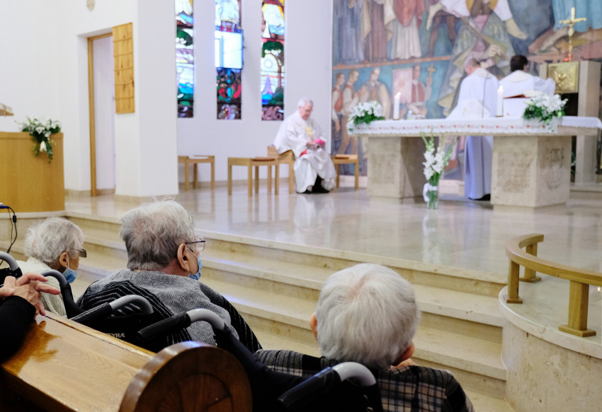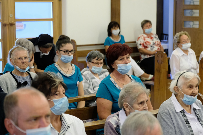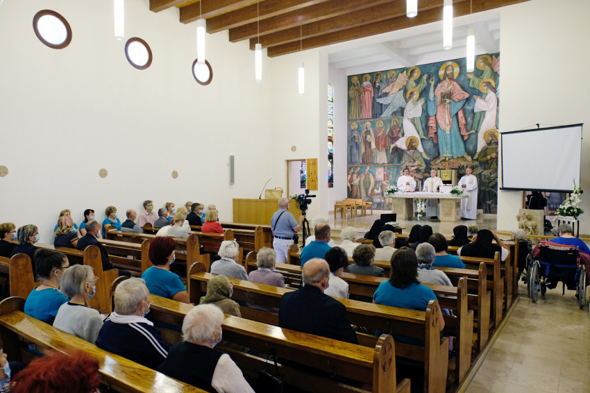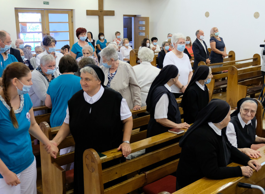 A szentmise elején Várszegi Asztrik emeritus pannonhalmi bencés főapát köszöntötte az ünnepre egybegyűlteket, köztük a templomhoz tartozó kolostorban (hajdan itt látták el az időseket) élő Szent Benedek Leányai szerzetesnővéreket, valamint a Katolikus Szeretetszolgálat központjának képviselőit; a Pax Otthon vezetőjét, Baranyi Évát; a munkatársakat és nem utolsó sorban az otthon lakóit, akik a járványhelyzet miatt fél év után most először lehettek jelen szentmisén szeretett templomukban.