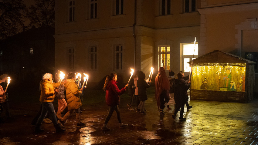 A tanoda bejglivel kínálta meg a gyerekeket és a vendégeket, majd fáklyákkal indultak el, a városrészben kántálva hirdetve a Megváltó születését.