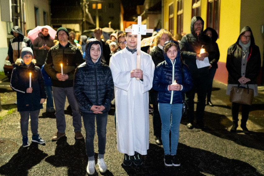 Az esti szentmise után a közel ezer jelen lévő hívő – köztük reformátusok és evangélikusok is – a veszprémi érsek vezetésével végigjárta a városi keresztút tizennégy stációját.