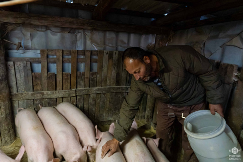 Lajos, az édesapa sertéseket nevel, hogy jövedelméből egyszer vizesblokkot és még egy szobát építhessen. „Inkább én nem eszem, de megveszem a sertésnek a kukoricát” – mondja. Hálája jeléül szilveszterre egy malacot ajánlott fel a közösségnek, melyet együtt el is fogyasztottak.