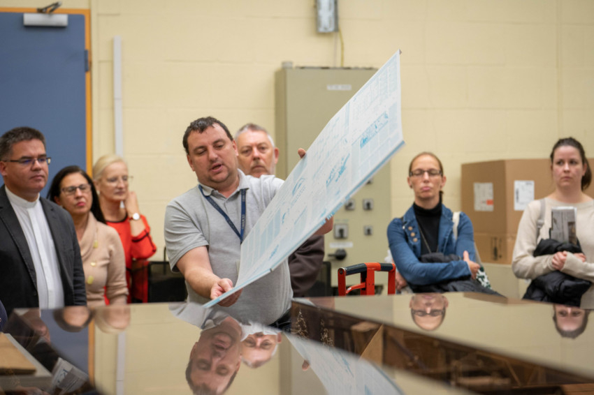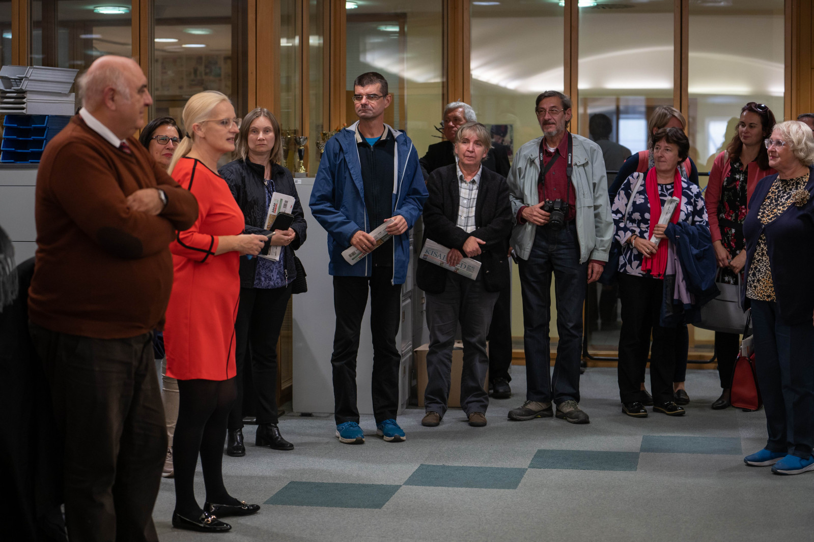 A szakmai és lelki jellegű találkozó október 8-án délután a Kisalföld szerkesztőségében tett látogatással vette kezdetét. Werner Krisztina főszerkesztő-helyettes mutatta be az egyik legrangosabb vidéki napilap történetét. Fénykorában az újság még a Népszabadság példányszámát is meghaladta százezres darabszámával. Az internet betörésével a Kisalföld nyomtatott példányszáma visszaszorult, de ma is nagyon jelentős az olvasótábora mind a nyomtatott orgánumnak, mind a kisalfold.hu-nak.