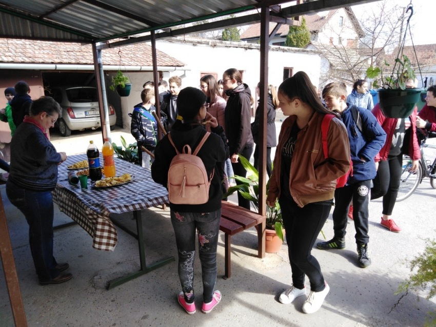 A közös munkát a teraszon pihenték ki, sós csemegét és üdítőt fogyasztva, beszélgetve.