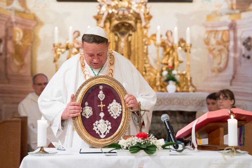 Az apát köszönő szavai mellett hálaadásként a Türjei Madonna kegyképét ezüst szívekkel ajándékozta meg.