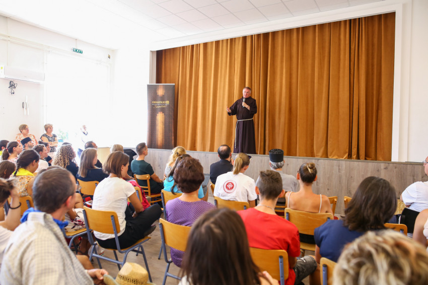 Végül Csaba testvér elmondott egy történetet, aminek a tanulsága ez volt: a jó szándékot is mederbe kell terelni, hogy sikeres tettek fakadjanak az ötleteinkből. Ebben segíthet a lelki vezető vagy egy felnőtt. Majd összefogásra bátorított, hiszen nem tudjuk, milyen idők jönnek, de ha egymás terheit elkezdjük hordozni, akkor biztosan le tudjuk győzni a nehézségeket.
