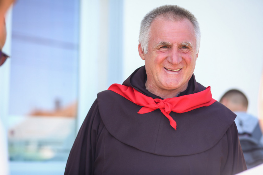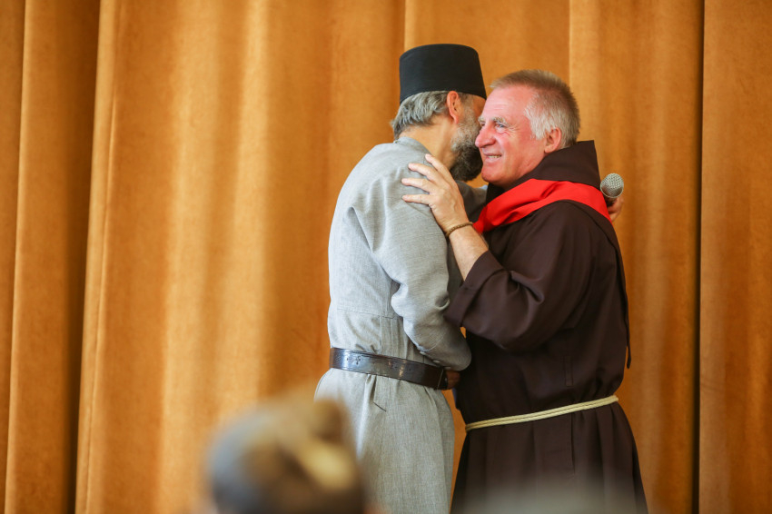 Előadása után ünnepélyesen zarándokká fogadták Csaba testvért egy piros kendőt a nyakába kötve.