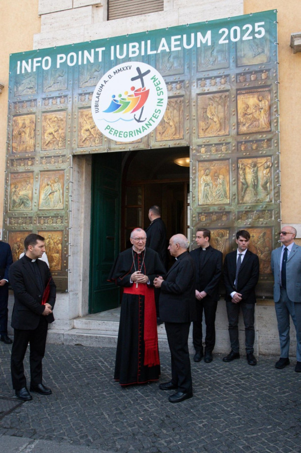 A bejáratnál a szalag átvágása után Parolin bíboros megáldotta a belső helyiségeket, melyek már több mint egy éve hivatalosan működnek azzal a céllal, hogy a turisták, zarándokok előzetesen hírt kapjanak a szentévről és meg tudják szervezni a saját zarándoklatukat az Örök Városba.