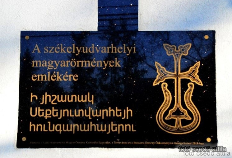 A székelyudvarhelyi Magyar–Örmény Kulturális Egyesület és a Budaörsi Örmény Önkormányzat együttműködésével készült emlékhelyet Gál Hunor gyergyószentmiklósi plébános, örmény katolikus lelkész áldotta meg. A talapzaton elhelyezett gránittáblán magyar és örmény nyelven tüntették fel, hogy a szobor a székelyudvarhelyi magyarörmények emlékére készült, valamint látható az állíttatók neve, a dátum és az örmény kereszt, a hacskár.