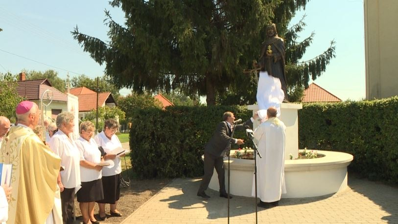Ünnepi beszédében Tóth József polgármester elmondta, 2001-ben már állítottak szobrot Szent Istvánnak ugyanezen a helyen, azonban ez az alkotás műkőből készült. Az önkormányzat ehelyett szeretett volna egy, a műemlék templomhoz méltóbb szobrot. A lehetőségek bővülésével ez végül létre is jöhetett: ma már a dombóvári Varga Béla által alkotott gránitszobor ékesíti a teret.