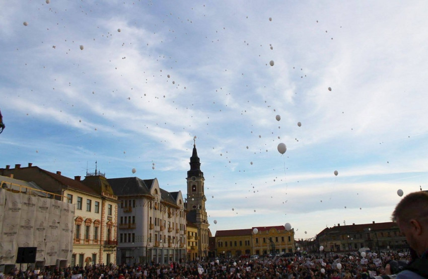 A gyűlésen fehér léggömböket eresztettek fel, majd menet indult az Urunk feltámadása ortodox katedrális érintésével a szülészethez.