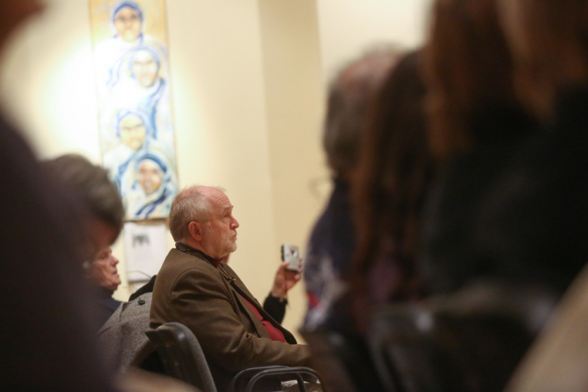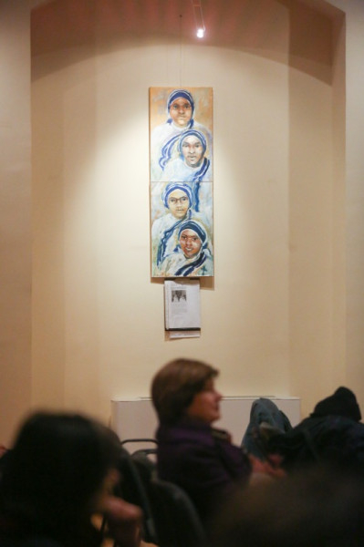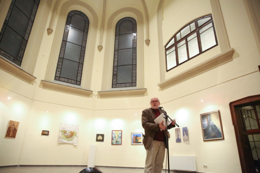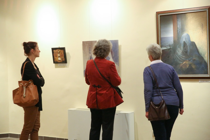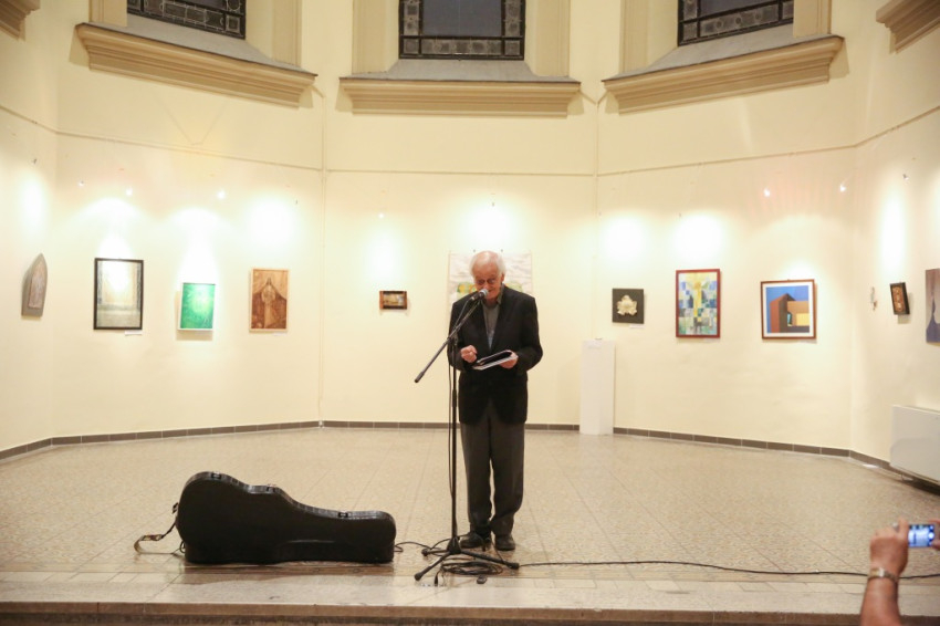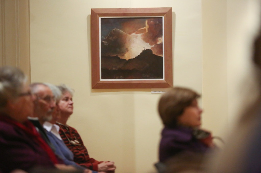Jelenits atya arról is beszélt, hogy a mai művészek gyakran haraggal, indulattal közelítenek a világhoz, jajonganak vagy erőteljes vezényszavakat kiáltanak, tiltakozva valami ellen. Ezen a kiállításon ennek nyoma sincs, itt a csönd az, ami megállít bennünket a képek előtt, amelyek azt sugallják: ne csak gyönyörködjünk bennük, hanem gondolkodjunk el rajtuk, adjuk át magunkat annak a megszólító erőnek, mely ezekről a festményekről árad. A csönddel teszik jobbá és igazabbá a világunkat, odafigyelve az irgalmasságra. Az alkotásokon megelevenednek az evangélium jelenetei, a szentek életének egy-egy eseménye, a személyükhöz köthető, az irgalmassággal kapcsolatos csodatettük, vagy csak egy templom. A képek egy megihletődött útnak az állomásai, mintha megszervezett módon találkoznának egymással, a szeretetre, a másokra való odafigyelés fontosságára vezetnek el bennünket.