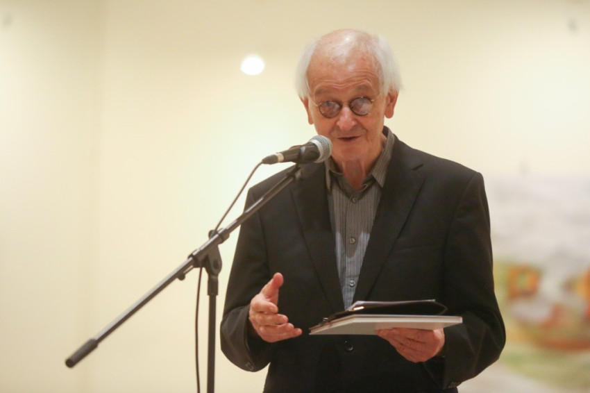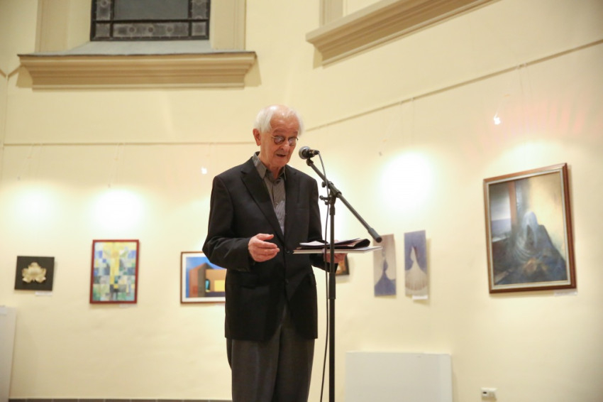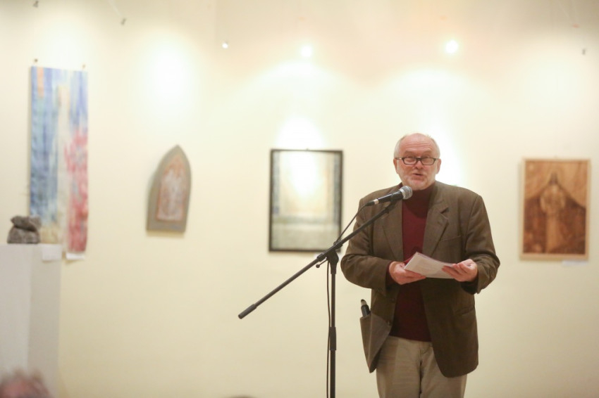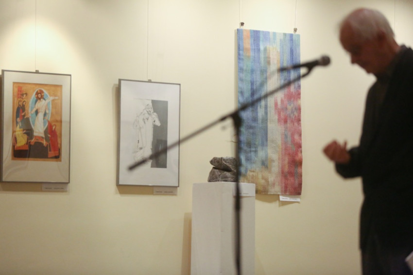 A kiállítást megnyitó Jelenits István kiemelte: az Olajág mai, sokszínű világunkban sajátos gondolatokat, eszmeiséget képvisel. Felidézte: a Szentatya az idei esztendőt az irgalmasság évének nyilvánította, és ez a tárlat szorosan kapcsolódik ehhez. A képeket az irgalmasság eszméje köti össze: az alkotók egyaránt megjelenítik az irgalmasságra szoruló embert, és a nyomorúságban, szegénységben szenvedőket észrevevő, velük együttérző, nekik segítő lelkeket is. Nem panaszkodni kell, hanem felemelni az embert, meglátni a rosszban is a jót, a szépet. Világnézetileg összetartozó művészek alkotásai láthatók itt a falakon, csodálatos gazdagság bontakozik ki előttünk, ahány alkotó, annyiféle megközelítés – állapította meg Jelenits tanár úr. Beszélt az irgalom szó kétféle jelentéséről is. Az egyik, hogy irgalommal tekintünk a különösen nehéz sorsú emberekre, akik nem azért szenvednek olyan sokat, mert megérdemelték, hanem mert Istennek az akaratából olyan súlyos terheket kell nap mint nap cipelniük, melyek alatt meggörnyednek. Rájuk különösen oda kell figyelni, biztatni, erősíteni őket, hogy mindennapi szenvedéseik, folyamatos nehézségeik ellenére is, találjanak rá az élet értelmére, szépségére; higgyék el: nincsenek egyedül, még ha sokszor így érzik is.