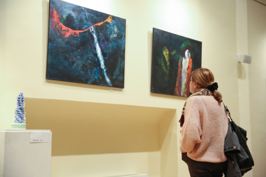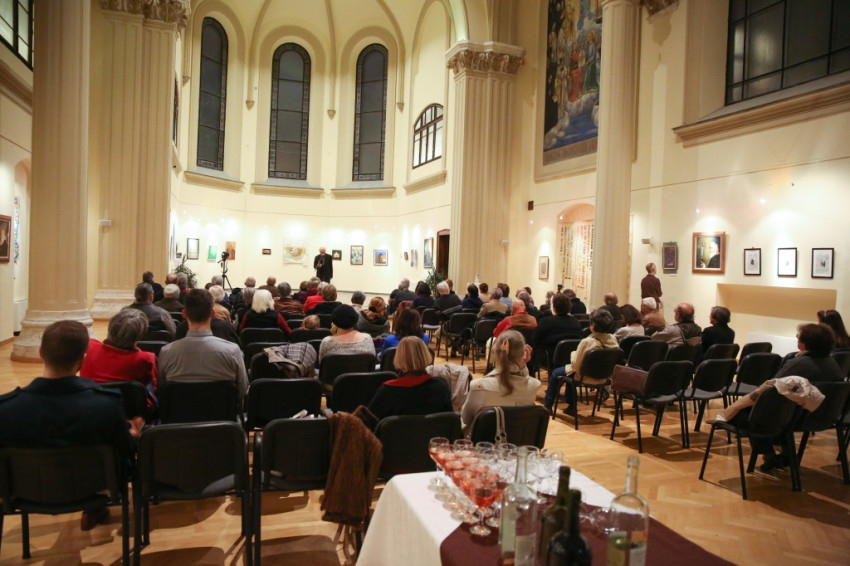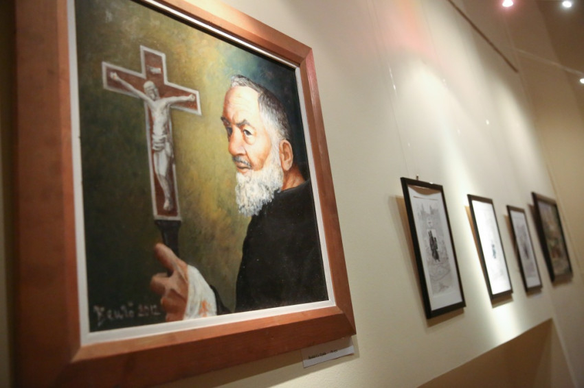 A tárlaton csaknem ötven alkotás szerepel, többek között Angyal Júlia, Jáger Margit, Makkai Márta, Orient Enikő, Rényi Eszter, Sinkó Veronika, A. Bak Péter, Vámos István alkotásait láthatjuk. A képek többsége evangéliumi jeleneteket, valamint a szentek – Árpád-házi Szent Erzsébet, Assisi Szent Ferenc, Pio atya – életéből vett eseményeket ábrázol. A tárlat november 11-ig látogatható, hétköznaponként 15 és 18 óra között.