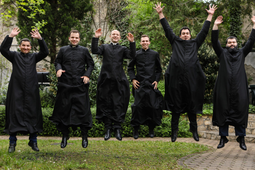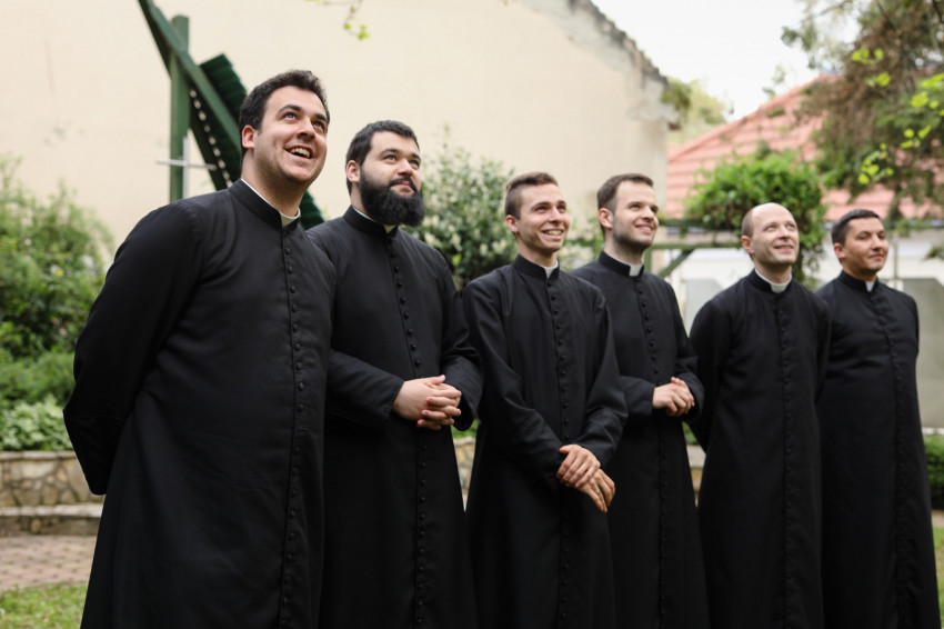 Alig fejezzük be a beszélgetést, már jönnek is érte kispaptársai, mert a hétvégi szertartásra próbálnak. A kertben búcsúzunk a csapattól. Csoportkép is készül, oldott a hangulat. Talán annak a felszabadultságnak vagyunk tanúi, amely a megtalált hivatás öröméből fakad.