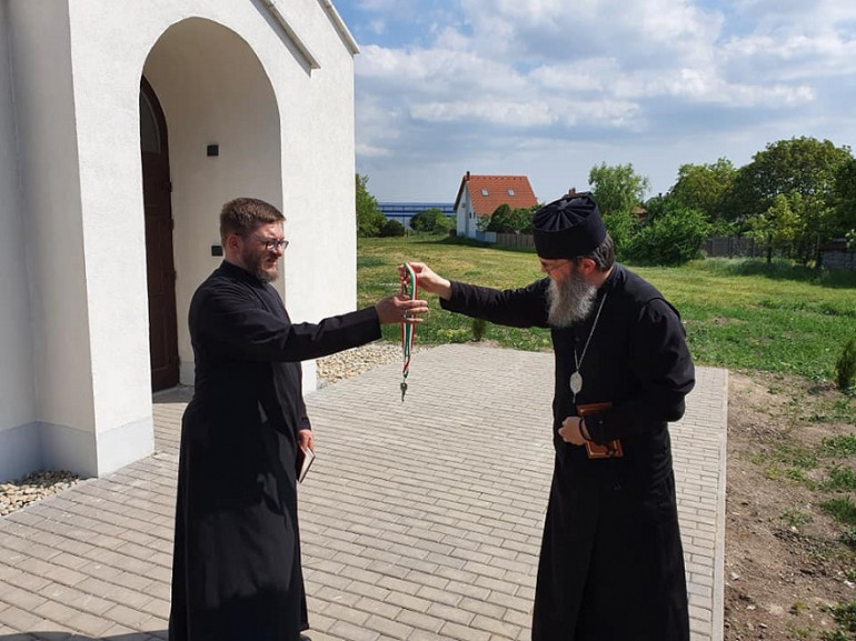 Orosz Atanáz püspök május 15-én átadta az immár felépült templom ajtajának kulcsát Demkó Balázs atyának.
