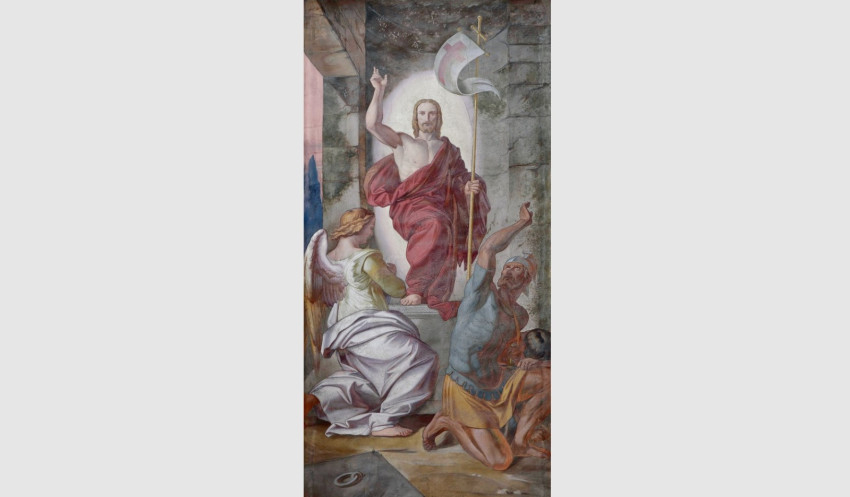 Fotó: Mudrák Attila – Feltámadt Krisztus Ludwig Moralt freskója (1854 körül) az esztergomi bazilikában; portré: Lambert Attila