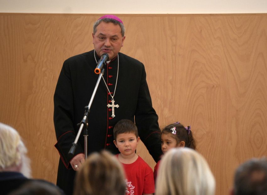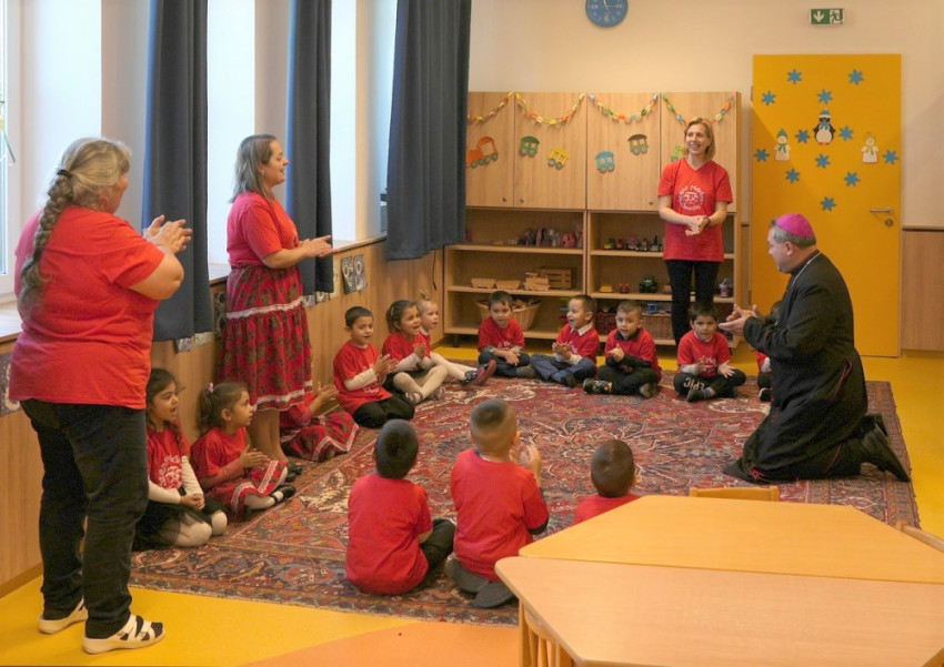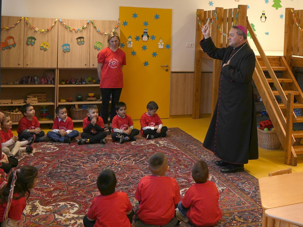 Az épület megáldása során Felföldi László mind a négy óvodai csoportot felkereste, és a termek szentelt vízzel való meghintése előtt játékos, barátságos perceket töltött a gyermekekkel és nevelőikkel.