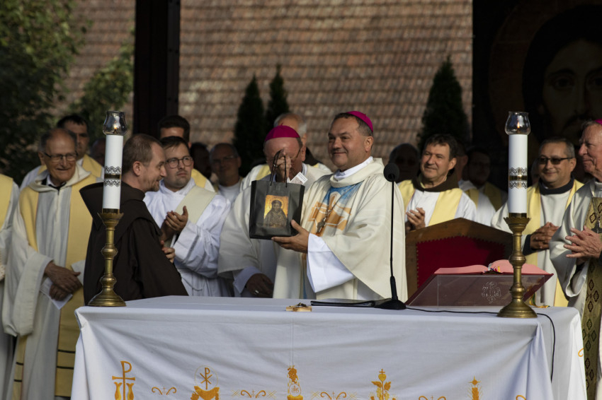 Szentbeszédének elején a főpásztor azt javasolta, utalva az angyali üdvözlet Szent Lukács könyvéből elhangzott evangéliumi szakaszára: üljünk mindannyian Mária lábaihoz. Majd arra kérte két másik jelenlévő püspöktársát, hogy röviden ők is szóljanak a résztvevőkhöz.