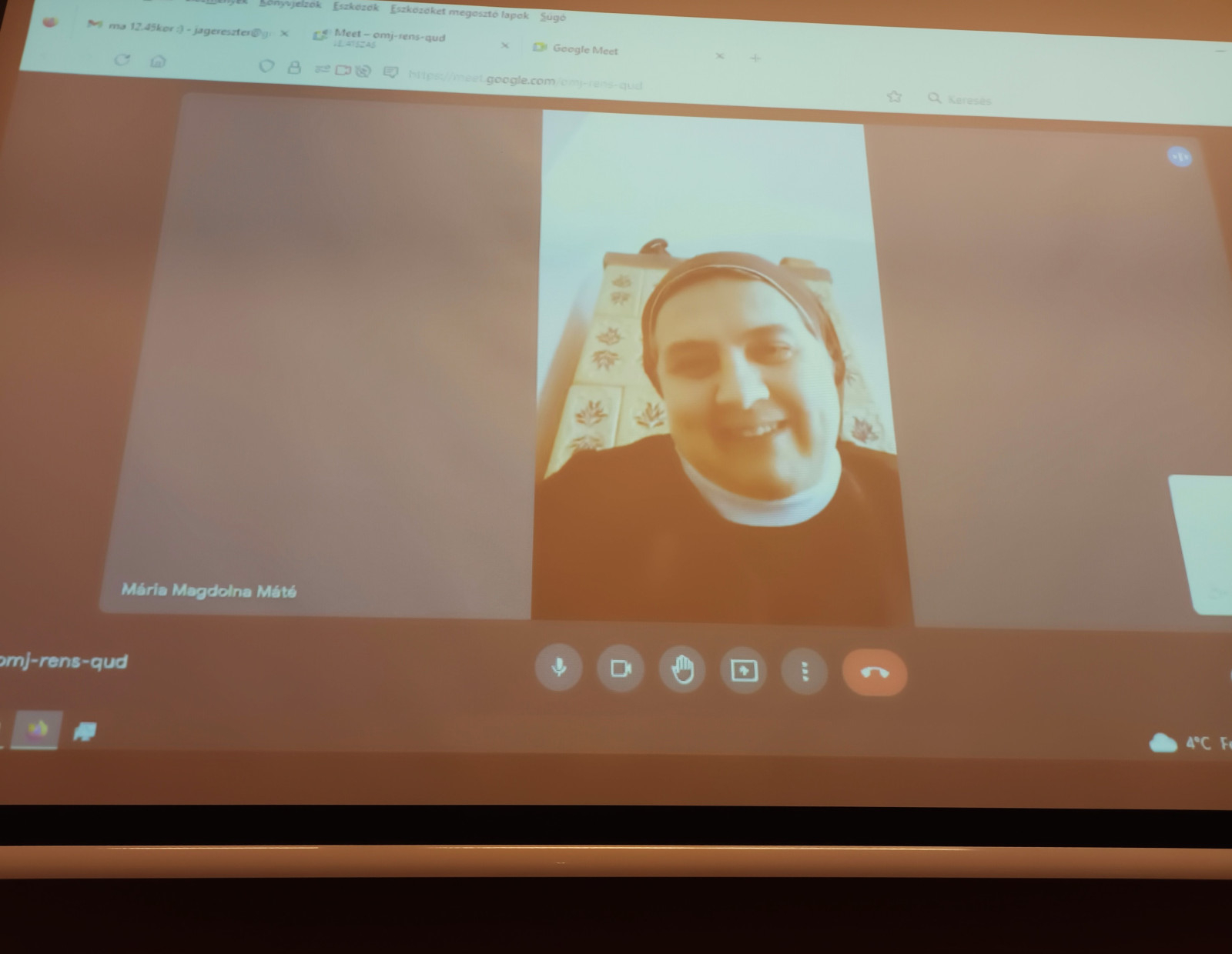 Az ünnepi ebéd után egy rászoruló kismamákat segítő házat vezető erdélyi ferences nővér, Máté Teréz online bejelentkezésen keresztül bátorította a résztvevőket a kórházlelkészi szolgálatban tapasztaltak alapján és az olvasott igehely tükrében. Mint mondta, a beteglátogatáshoz elsősorban mély, személyes istenkapcsolatra van szükség, ami nagyon hasonlít a hitvesi kapcsolathoz. Teréz nővér elmondta, a saját életünkben megtapasztalt mélypontok és visszatérések segíthetnek számunkra megállni a betegágy mellett azokban az élethelyzetekben, amikor az elhagyottság, magányosság idejét éli a másik.