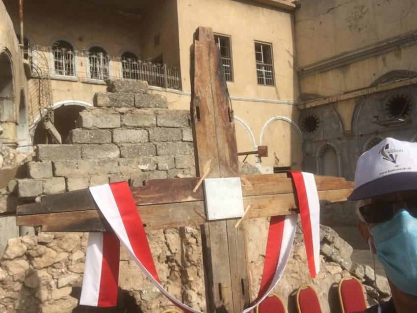„A Ninivei-fennsík lerombolt templomainak padjait használtuk fel a kereszthez. Annak idején félretettük ezeket a maradványokat, és most egy nap alatt állítottuk össze belőlük a keresztet” – számolt be Fajszal Dzseber iraki geológus, régész, aki jelenleg a háború alatt kárt szenvedett iraki történelmi helyek rekonstrukciójával foglalkozik.